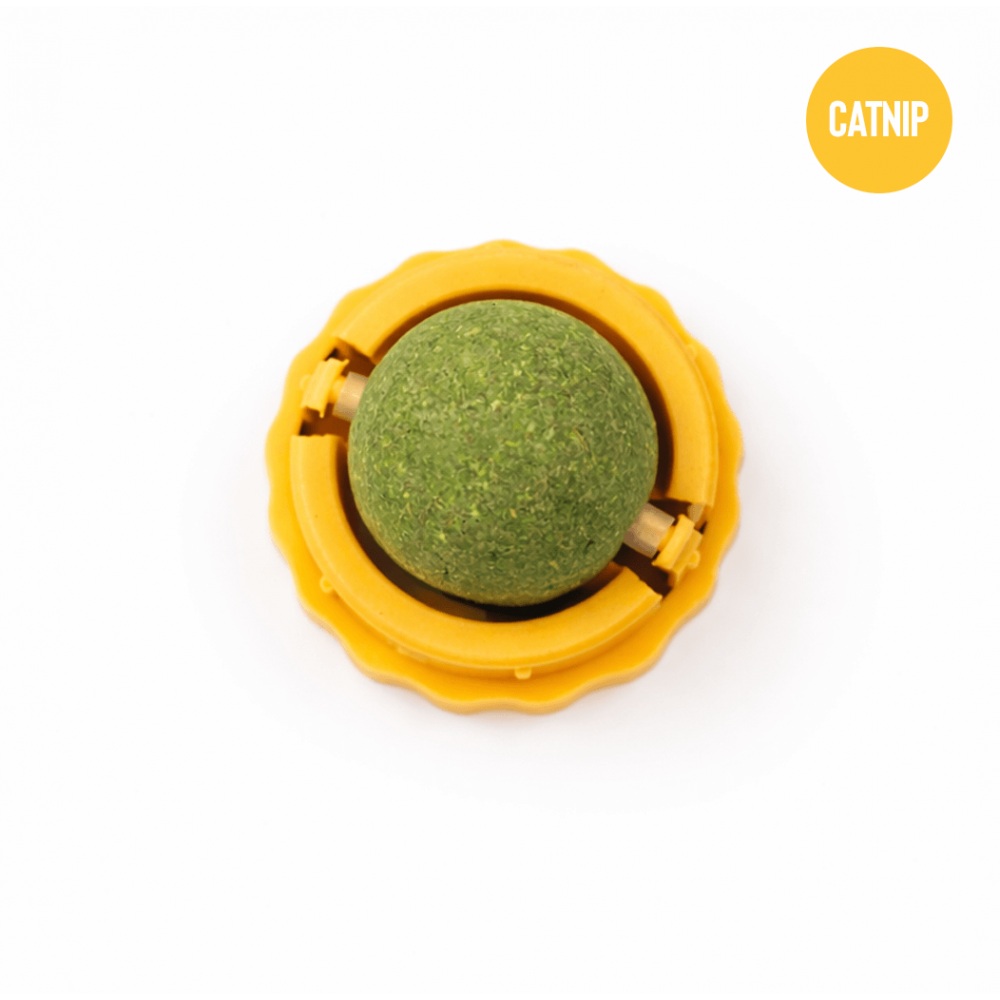 Estimule el instinto natural de su gato con este juguete interactivo de bola de catnip giratoria, diseñado para fijarse fácilmente a paredes, muebles o superficies lisas. Gracias a su sistema adhesivo en la parte posterior, puede colocarlo a la altura ideal para que su gato lo lama, lo frote o lo golpee con sus patitas, proporcionando entretenimiento prolongado y estimulación sensorial.