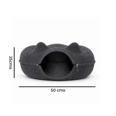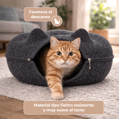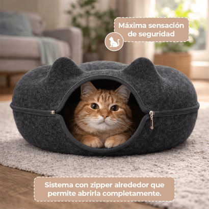 Gracias a su cierre 360°, puedes desmontarla fácilmente para limpieza o transporte. Su estructura firme mantiene la forma sin perder suavidad, ofreciendo un espacio estable y confortable. Su estructura cerrada favorece el descanso profundo al proporcionar un entorno cálido, protegido y acogedor, ideal para gatos que aman los espacios íntimos.