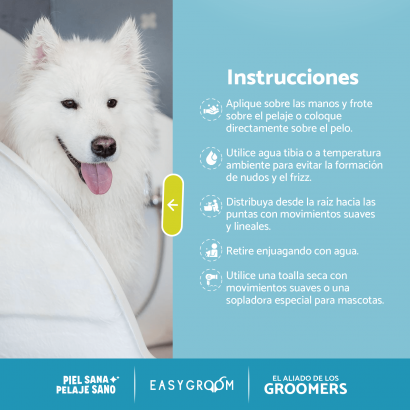 Patita Azul Siéntete con confianza al usar Easy Groom ya que su pH neutro 7.0 es ideal para conservar las características naturales de la piel y el pelo, sin causarle afectaciones en la piel de tu querida mascota