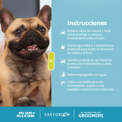 Siéntete con confianza al usar Easy Groom ya que su pH neutro 7.0 es ideal para conservar las características naturales de la piel y el pelo, sin causarle afectaciones en la piel de tu querida mascota
