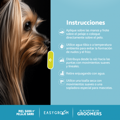 Siéntete con confianza al usar Easy Groom ya que su pH neutro 7.0 es ideal para conservar las características naturales de la piel y el pelo, sin causarle afectaciones en la piel de tu querida mascota