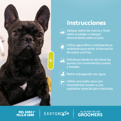 Patita Azul Siéntete con confianza al usar Easy Groom ya que su pH neutro 7.0 es ideal para conservar las características naturales de la piel y el pelo, sin causarle afectaciones en la piel de tu querida mascota