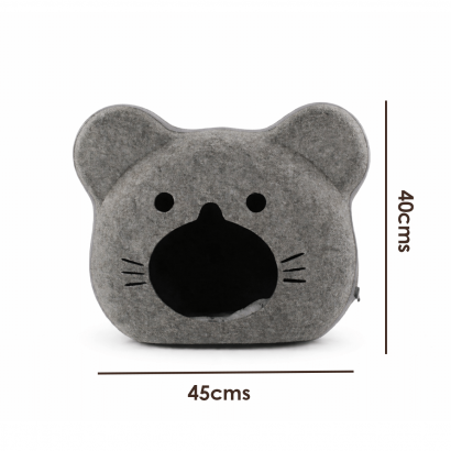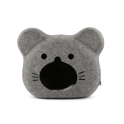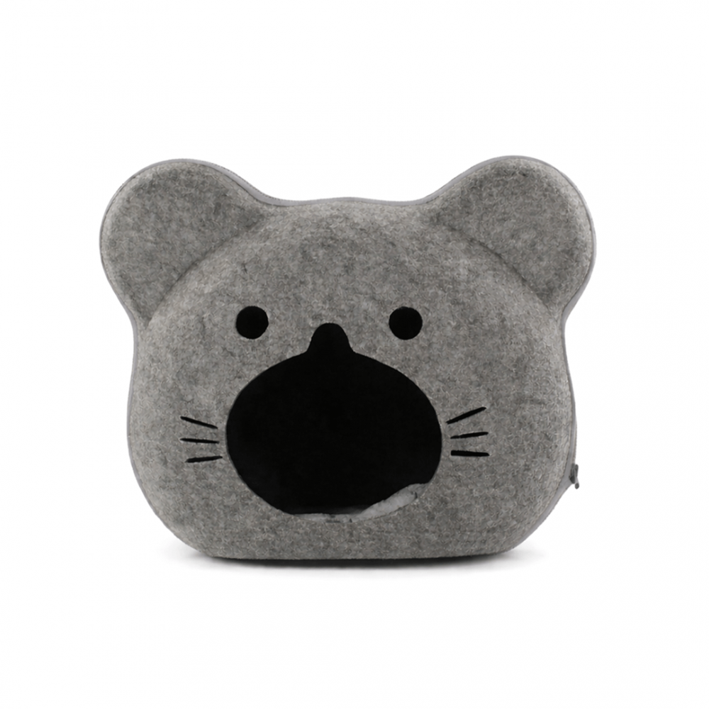 Un refugio cómodo, amplio y lleno de personalidad para su felino. Esta adorable casa para gato con forma de cara de ratón combina diseño divertido con funcionalidad, brindando un espacio seguro donde su mascota podrá descansar, esconderse y sentirse protegida. Disponible en 2 colores modernos: Gris claro y Negro