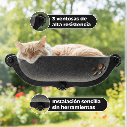Convierta cualquier ventana en el lugar favorito de su gato. Esta hamaca elevada combina comodidad, seguridad y diseño moderno, permitiendo que su mascota descanse mientras disfruta del sol y la vista exterior. Diseñada para instalarse directamente en vidrio mediante ventosas de alta resistencia, ofrece un soporte firme y estable sin necesidad de herramientas.