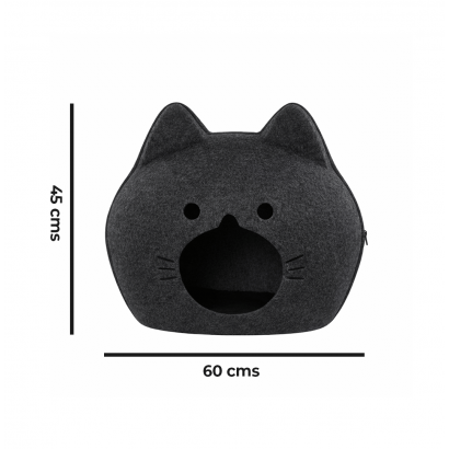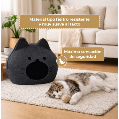 Un espacio seguro, cómodo y acogedor diseñado especialmente para gatos que aman esconderse y descansar con total tranquilidad. Esta cama tipo cueva en forma de carita combina funcionalidad y estilo moderno para integrarse perfectamente en cualquier hogar. Su diseño cerrado brinda protección, privacidad y una sensación natural de seguridad, ayudando a reducir el estrés y favoreciendo un descanso profundo.