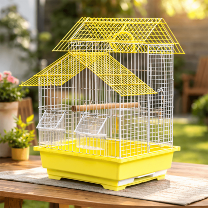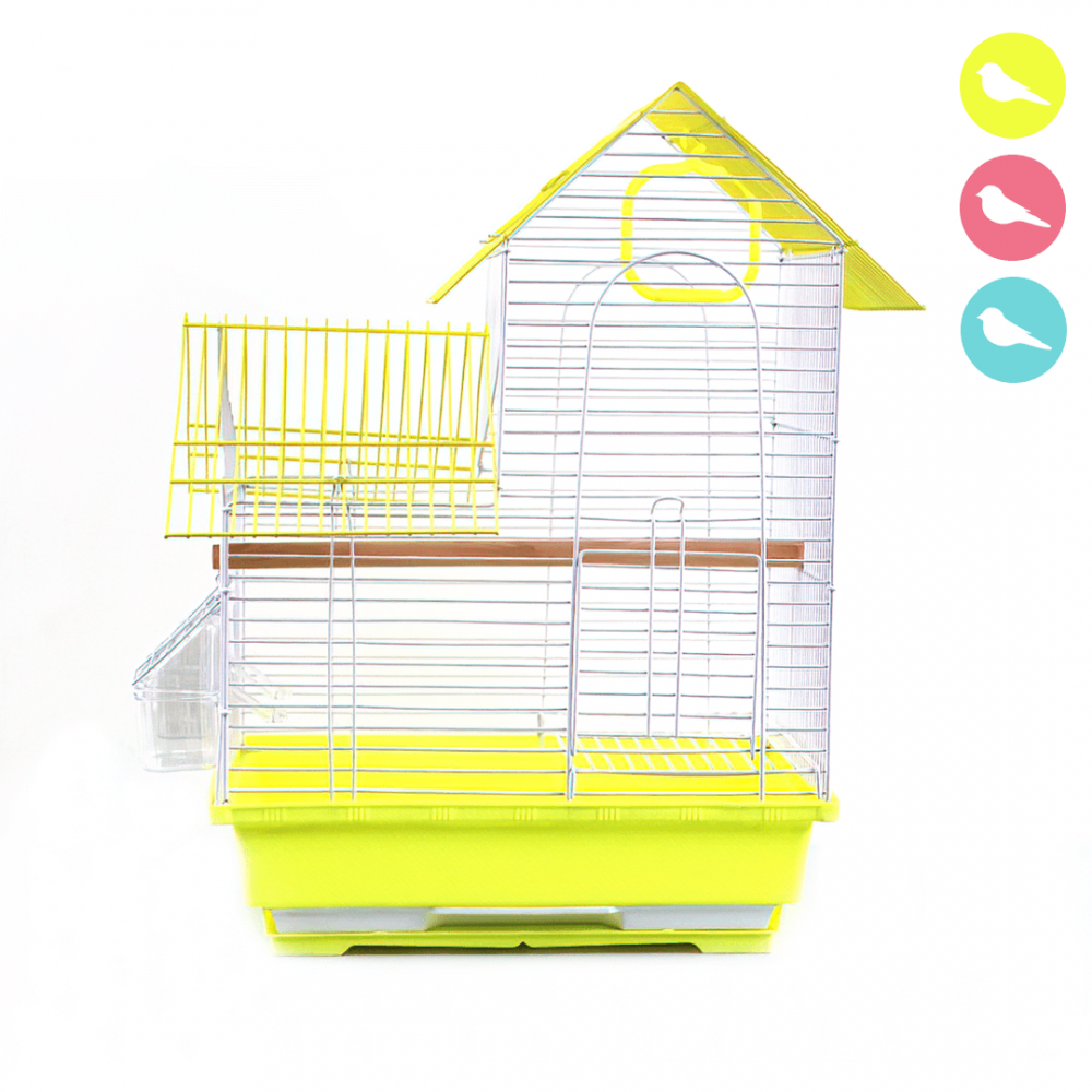 Brinde a sus aves un espacio cómodo, seguro y funcional con esta jaula tipo casa de doble nivel, diseñada para combinar practicidad y un diseño moderno en colores vibrantes. Su estructura metálica resistente ofrece ventilación óptima y seguridad, mientras que su base plástica profunda facilita la limpieza diaria. El diseño en forma de casa con techo inclinado no solo aporta un estilo atractivo, sino que también brinda mayor altura y espacio interior para el bienestar del ave. Incluye percha de madera natural y recipientes transparentes para alimento y agua, permitiendo una alimentación práctica y control visual del contenido. Ideal para aves pequeñas como periquitos, canarios y otras especies de tamaño similar.