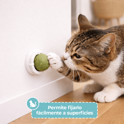 El Catnip para pared es un juguete diseñado para estimular el instinto natural de los gatos, brindando momentos de diversión, relajación y bienestar. Su diseño permite colocarlo fácilmente en paredes u otras superficies para que el gato pueda lamer, frotarse y jugar con la bola de Catnip.