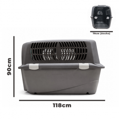 - Talla XL 91 cm largo x 65 cm alto x 55 cm ancho Incluye doble seguro y puerta lateral.