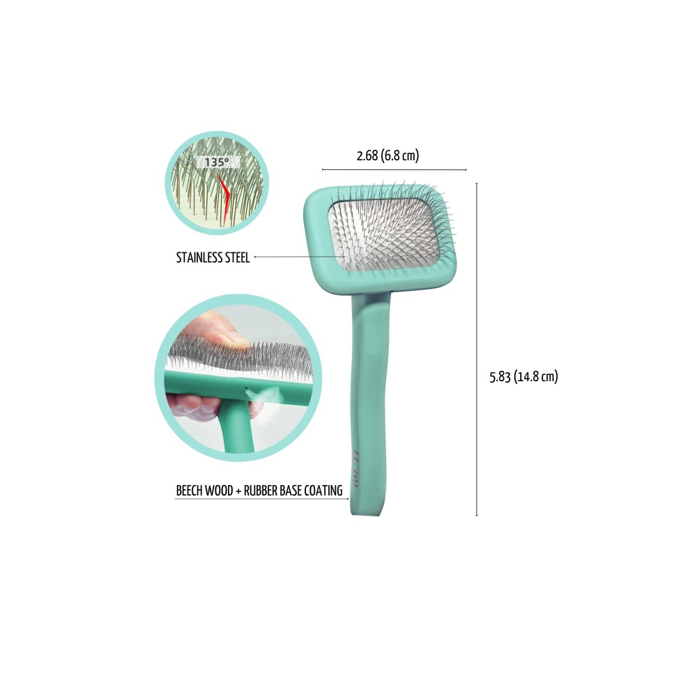 Los dientes del cepillo son duraderos y muy suaves, con un ángulo de curvatura que evita arañazos en la piel del animal y hace que el pelo cepillado quede suave y esponjoso.