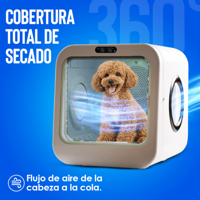 ✔️Es una cabina inteligente de secado diseñada para ofrecer un proceso rápido, uniforme y sin estrés para perros y gatos. Su sistema de flujo de aire 360° permite un secado completo de la cabeza a la cola, mientras su pantalla táctil digital facilita el control de temperatura, tiempo y velocidad. Incorpora más de 15 comandos inteligentes de voz, distintos modos de secado (suave, pelo largo y rápido), iluminación ambiental relajante y función de esterilización UV para mayor higiene. Su puerta de vidrio de doble capa, ventanas de inspección y sistema recolector de pelo lo convierten en una opción moderna, segura y eficiente tanto para groomers profesionales como para hogares exigentes.