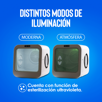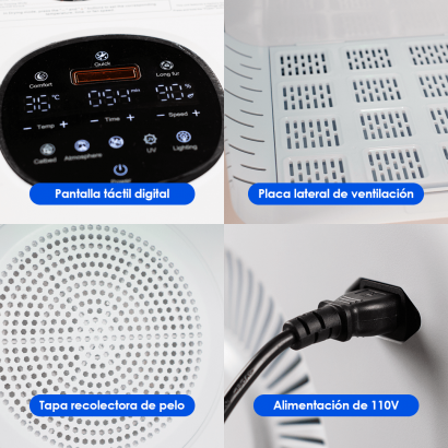 🎙️ +15 Comandos Inteligentes de Voz: Active funciones como: Encendido Apagado Esterilización Modos de secado Permite continuar trabajando sin interrupciones.