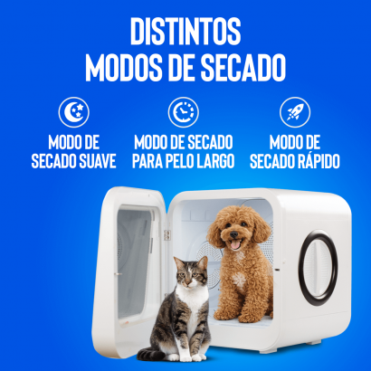 🐶Modos Especializados de Secado: 🌙 Modo Secado Suave 🐾 Modo para Pelo Largo ⚡ Modo Secado Rápido