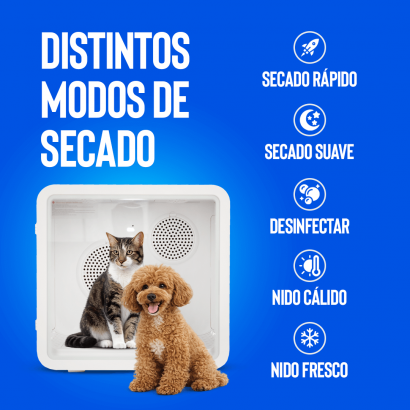✅Cabina amplia de 76 litros ideal para gatos grandes y perros pequeños, con flujo de aire 360° que seca abdomen, patas y zonas difíciles de manera uniforme.