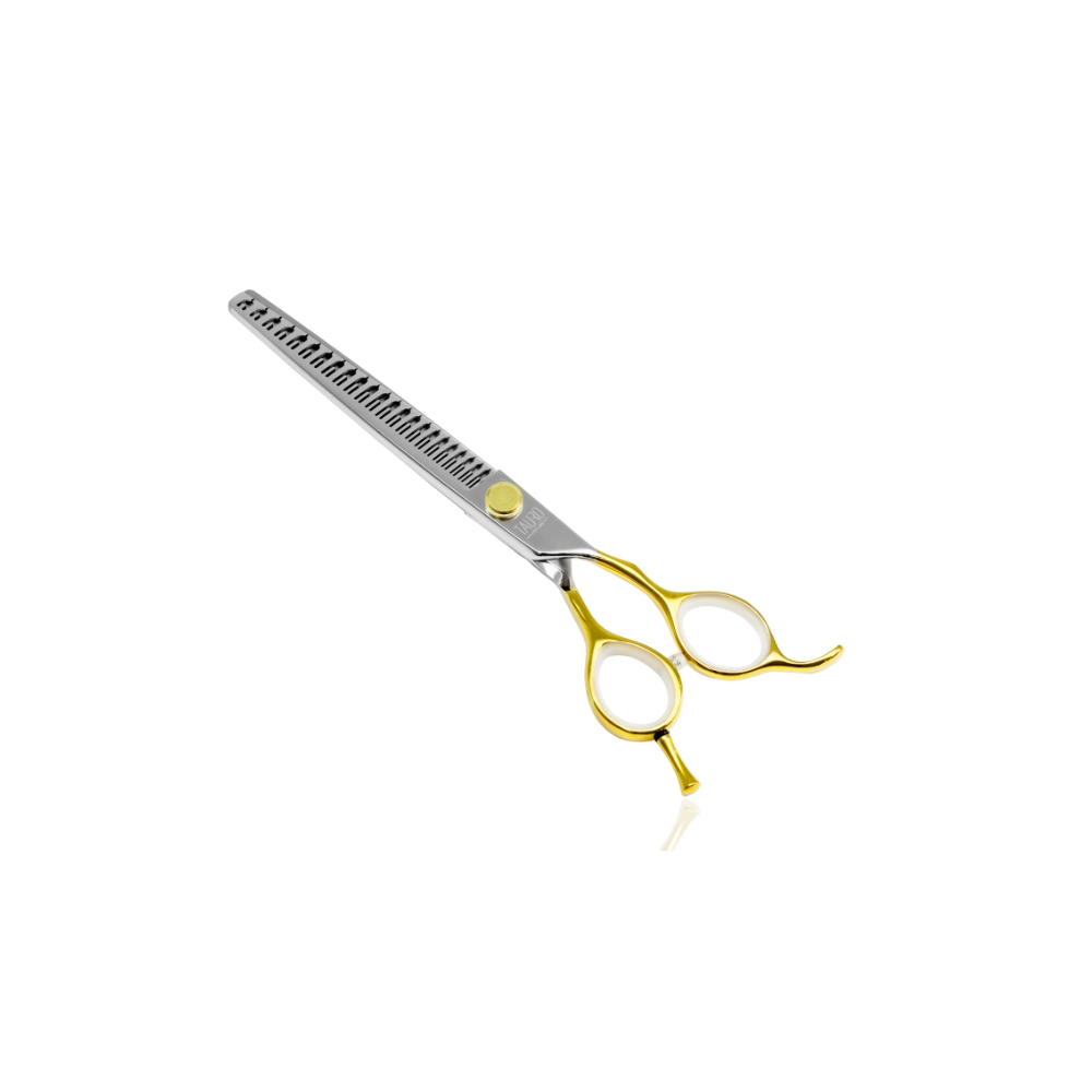Las tijeras de corte recto Tauro Pro Line Perfection by Janita J. Plunge, fabricadas en acero inoxidable 440c de la más alta calidad, son una excelente elección para quienes buscan una herramienta duradera y de alta calidad para cortar el pelo de su mascota. Las tijeras tienen un diseño ergonómico y son duraderas. Con hojas de forma práctica, facilitan la obtención de resultados precisos sin esfuerzo. Fabricadas con materiales de alta calidad, estas tijeras son duraderas, resistentes y fáciles de manejar.